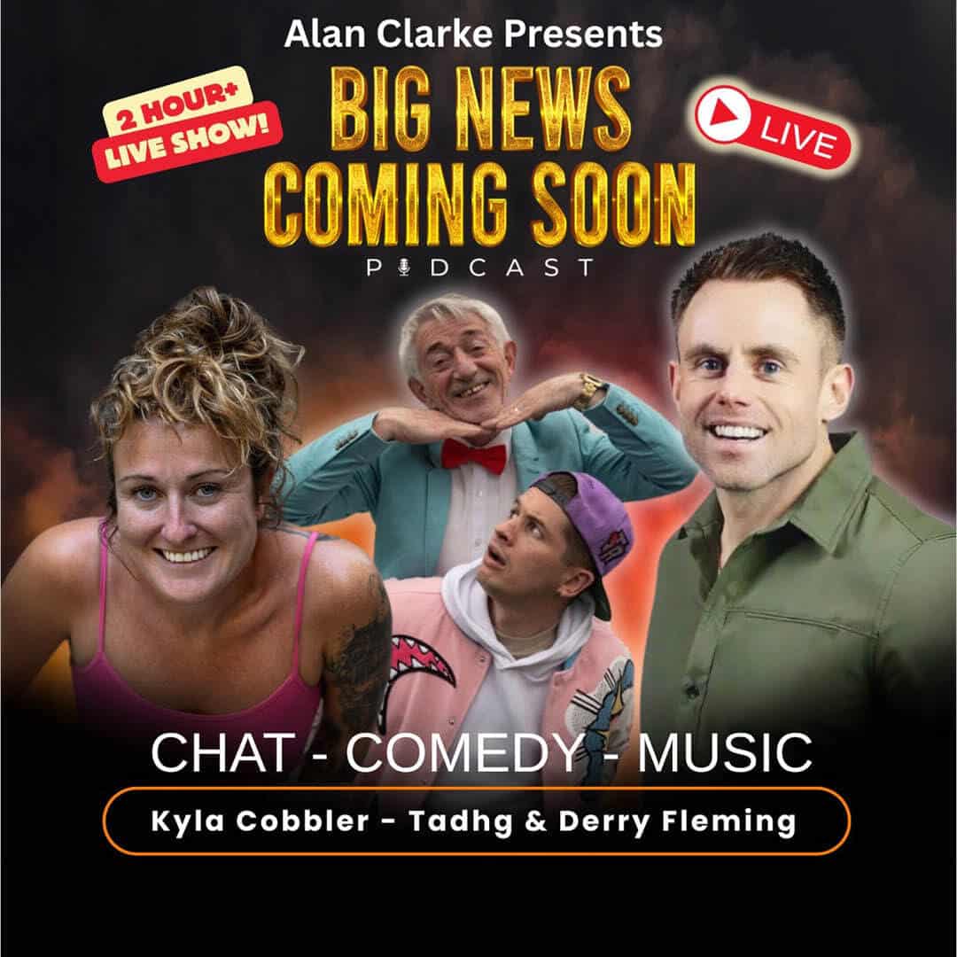 Alan Clarke’s The Big News Coming Soon Live Podcast is back after four sell-out shows! This time, it’s bigger than ever with special guests Tadhg & Derry Flemming, Kyla Cobbler, and live music from THE ATLANTIC. Expect comedy, conversation, music, and plenty of surprises. Tickets on sale Friday 15th August at 10am—don’t miss it!